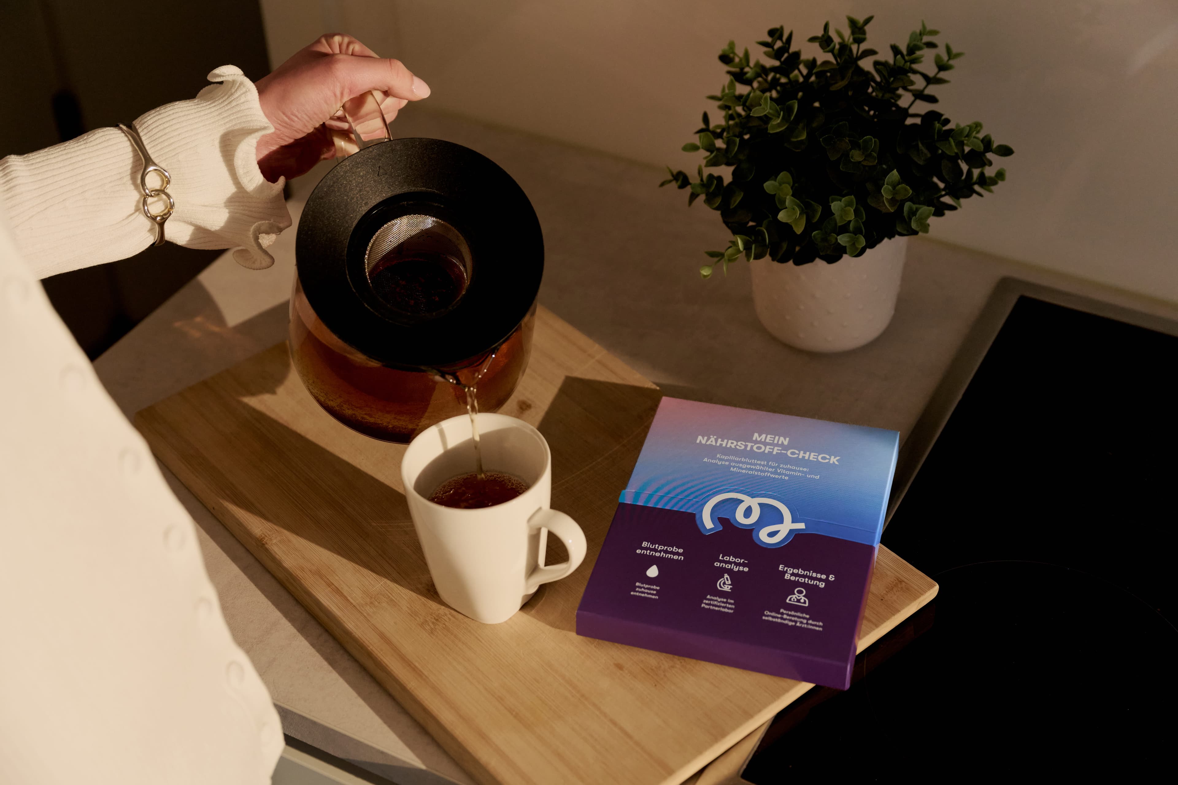 Der Nährstoff-Check analysiert ausgewählte Vitamin- und Mineralstoffwerte. Da die individuelle Versorgung selbst bei bewusster Ernährung variieren kann, liefert der Test einen fundierten erste Einblick und kann dabei unterstützen, diese besser einzuordnen.